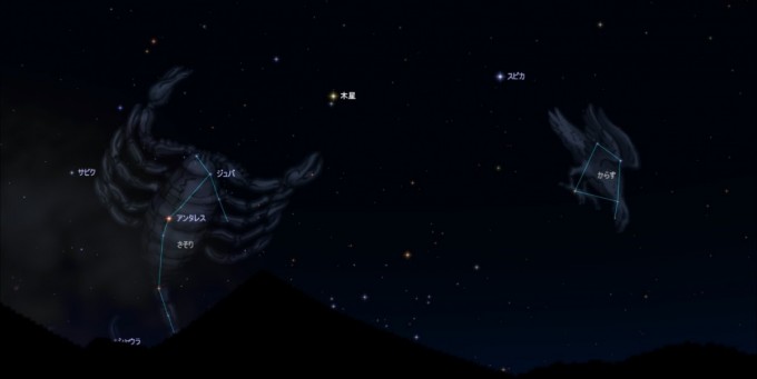 目立たない星座ですが、月明かりがない夜なら意外と簡単に「からす座」を見ることができます。木星とおとめ座のスピカを目印にして探してみましょう。