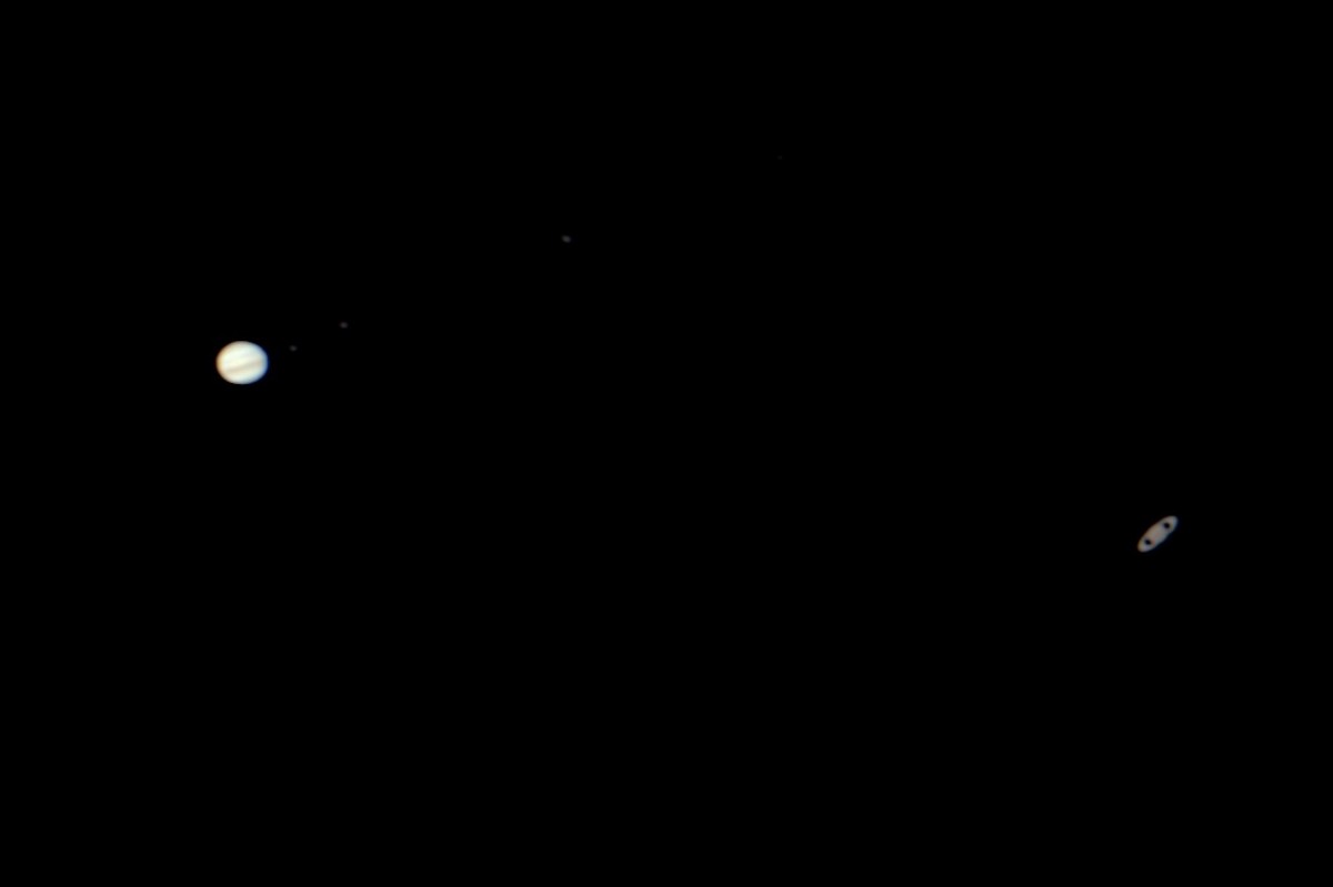 撮影者コメント:露出的にはガリレオ衛星を諦めたのですが、よく見るとエウロパ、イオ、ガニメデの3個が微かに写っています。本番の21日22日は晴れて欲しいですね。