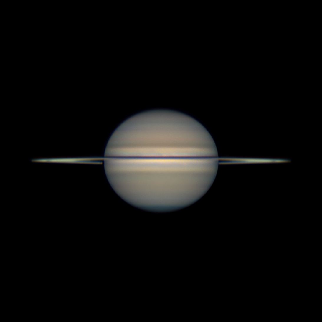 土星の環は,その厚みが数十m~100m程度と考えられていて,土星本体の直径(116,460 km)と比較すると1/200万。土星本体に比べると非常に薄いわけです。あまりに薄いため,環を真横から見ると認識できなくなる(見えなくなる)んです。この見えなくなる現象を環の消失と呼んでいます。