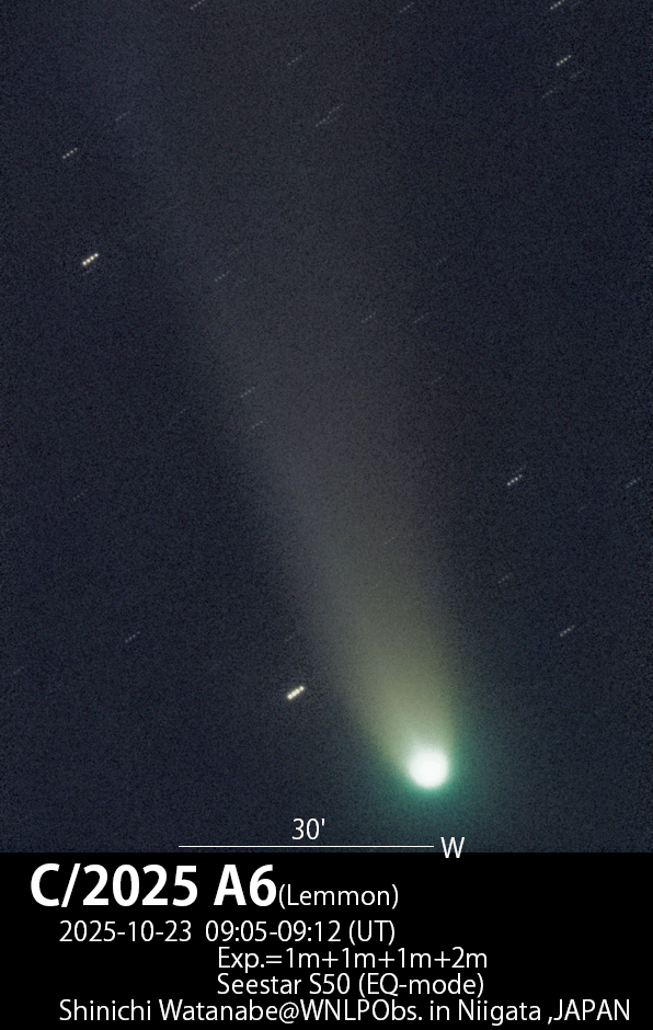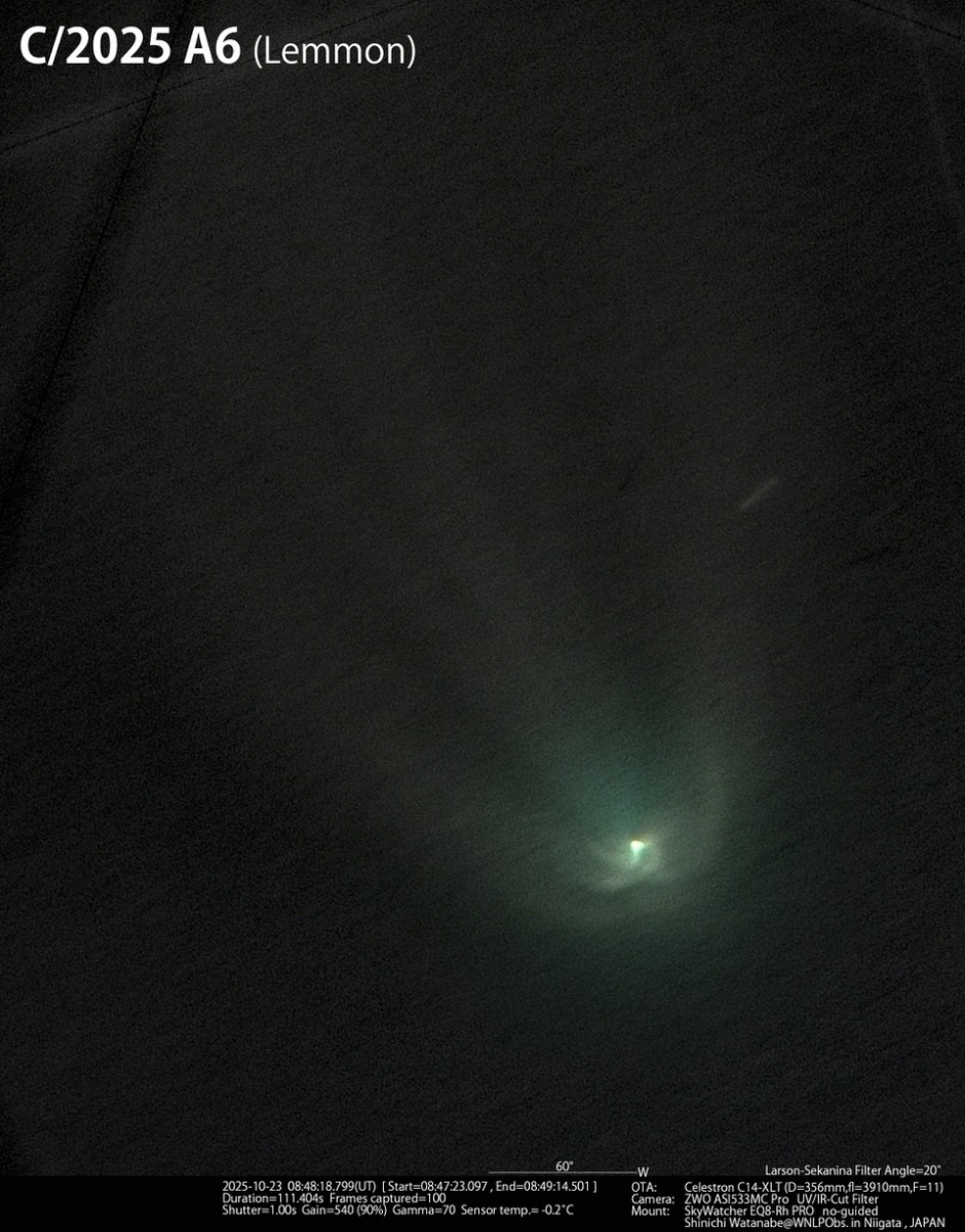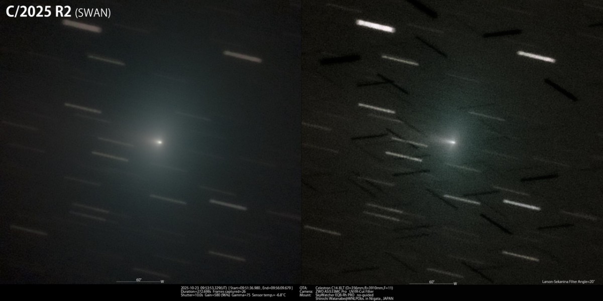 2025年10月23日夕刻のレモン彗星(C/2025 A6)とスワン彗星(C/2025 R2)を天体望遠鏡博物館会員がとらえました。