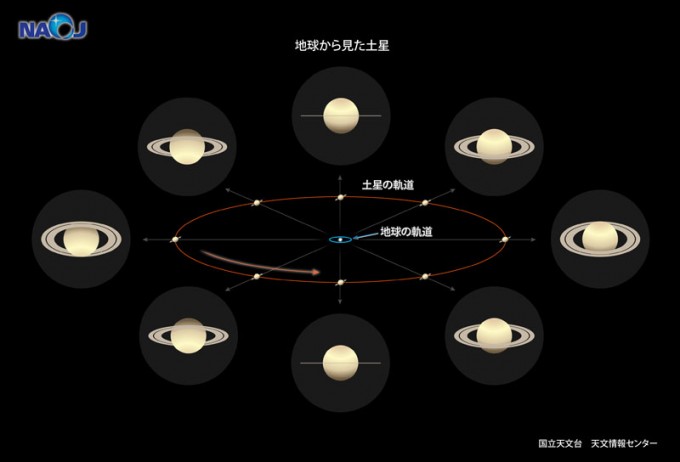 地球から見た土星の姿の変化 国立天文台WEBより転載